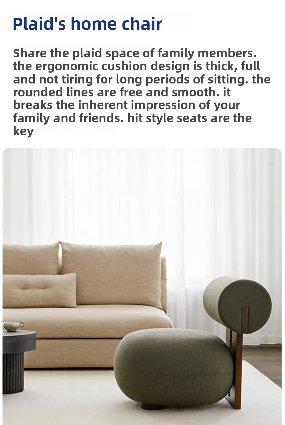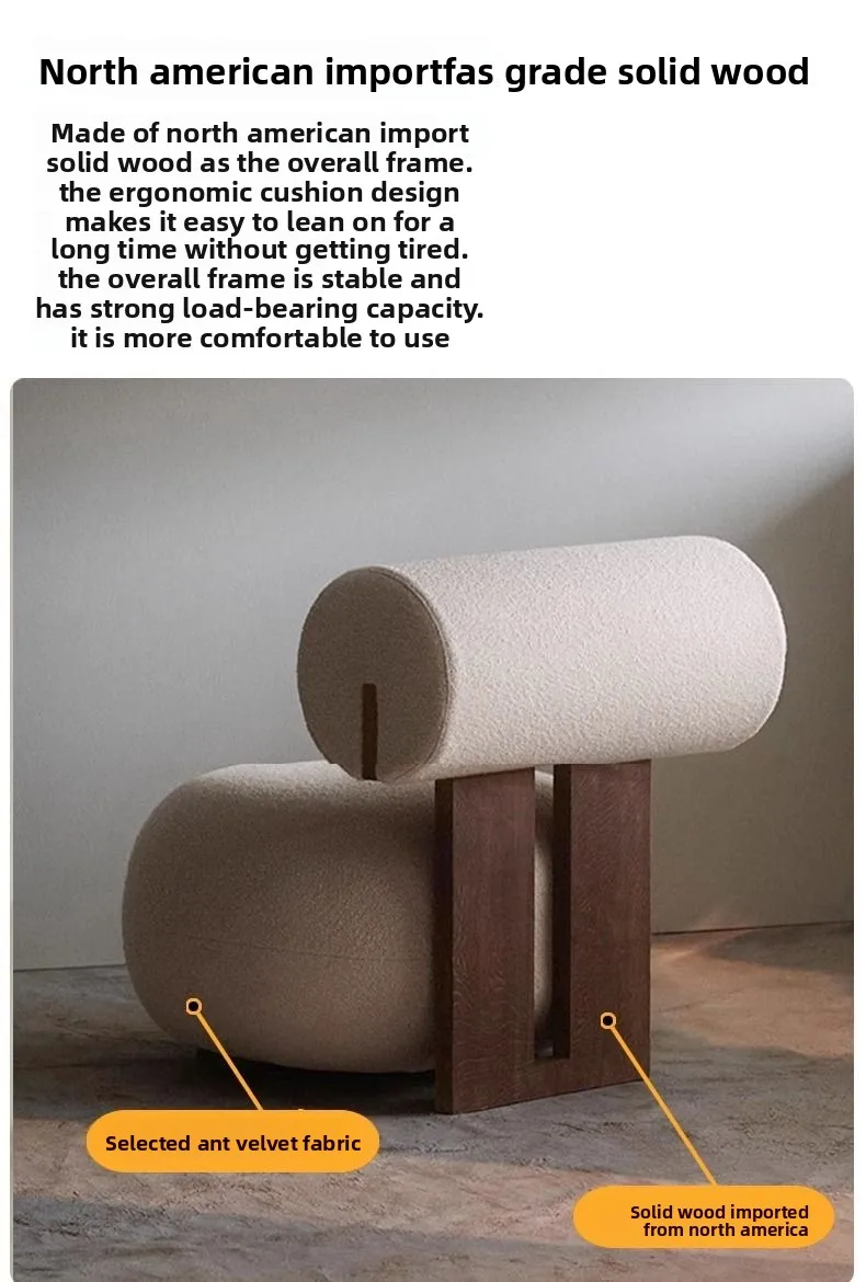 Nordic, Solid Wood, Sofa Chair, Modern, Light Luxury, Cream Style, Living Room Lazy Lamb Wool, Hippo Chair, Single, Casual Chair