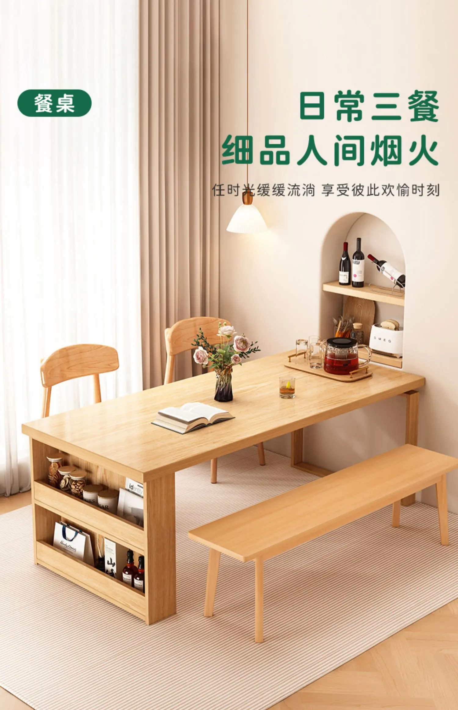 Nordic Walnut Kitchen Island Extendable Dining Table 2025 New Built-in Storage Drawers All-in-One Home Furniture FYDT