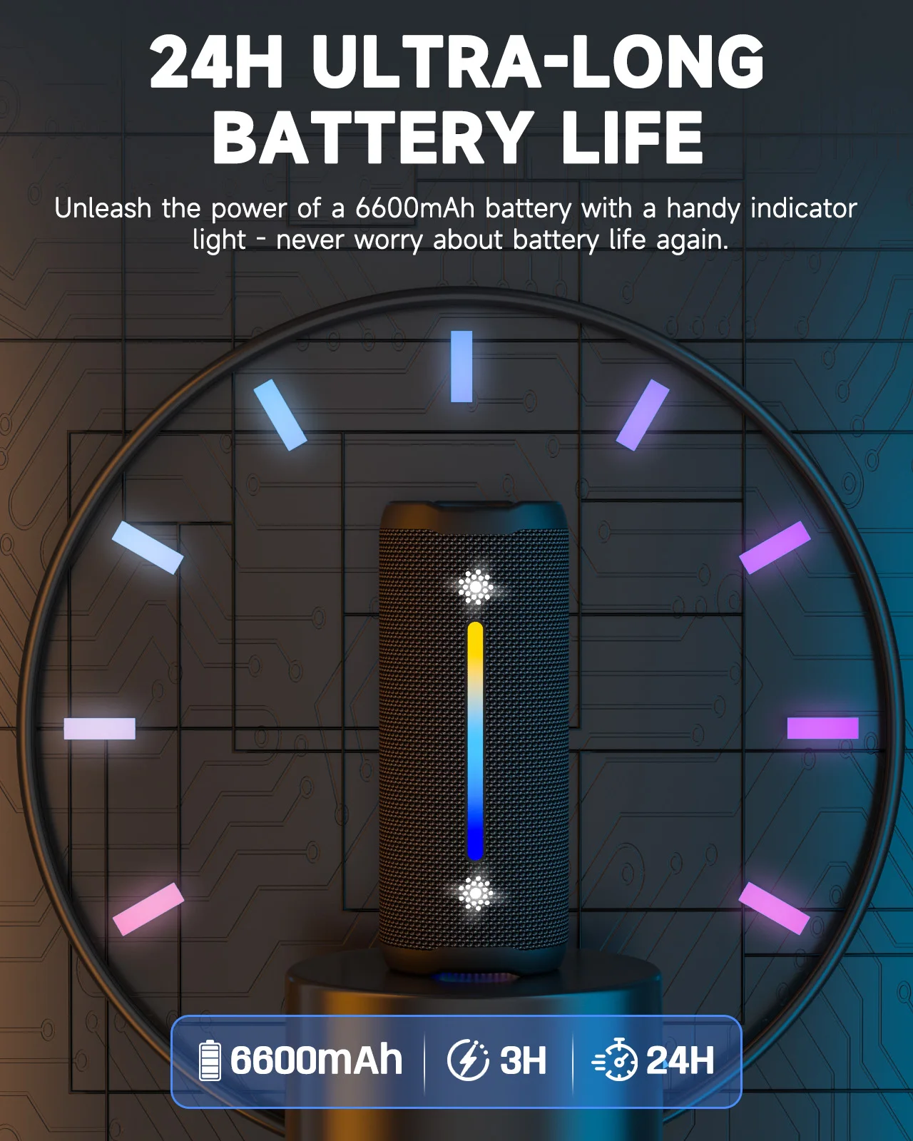 OHAYO X10MAX Bluetooth Speaker 35W – IPX7 Waterproof, Powerful Stereo Sound, 24H Playtime, TWS Pairing, Dazzling Lights, Bass Up