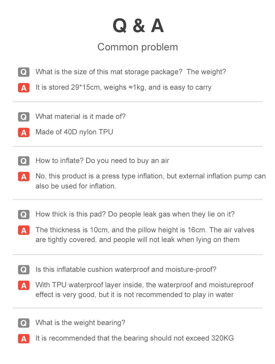Made of TPU Nylon, this mattress is dampproof, ensuring that you stay dry even in wet conditions.