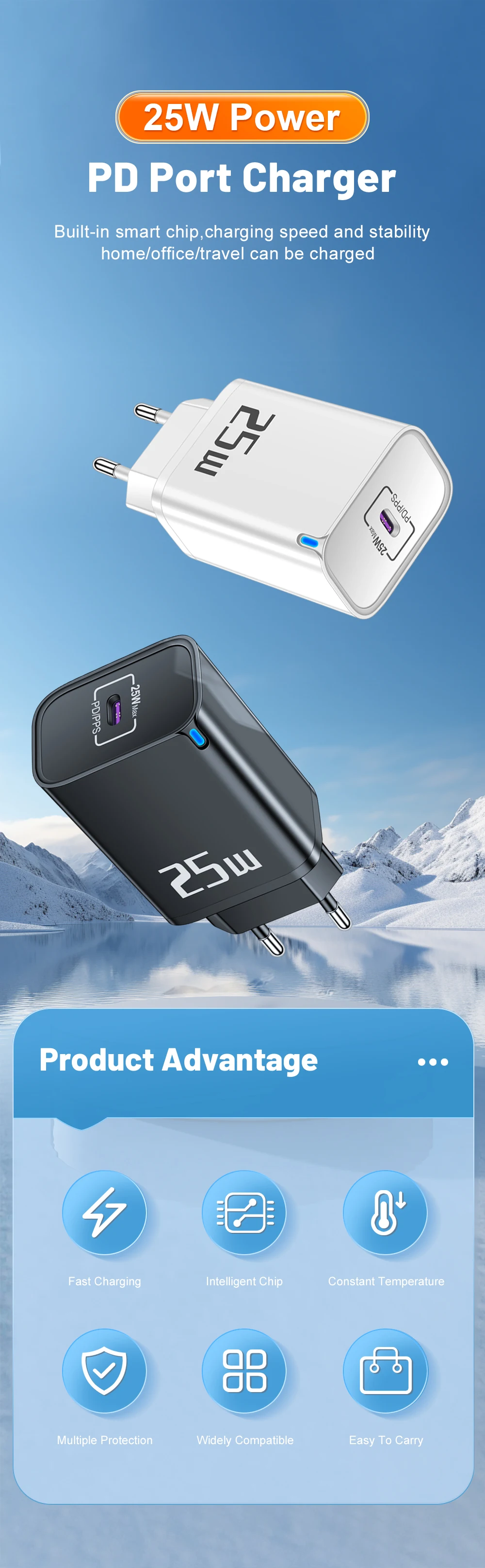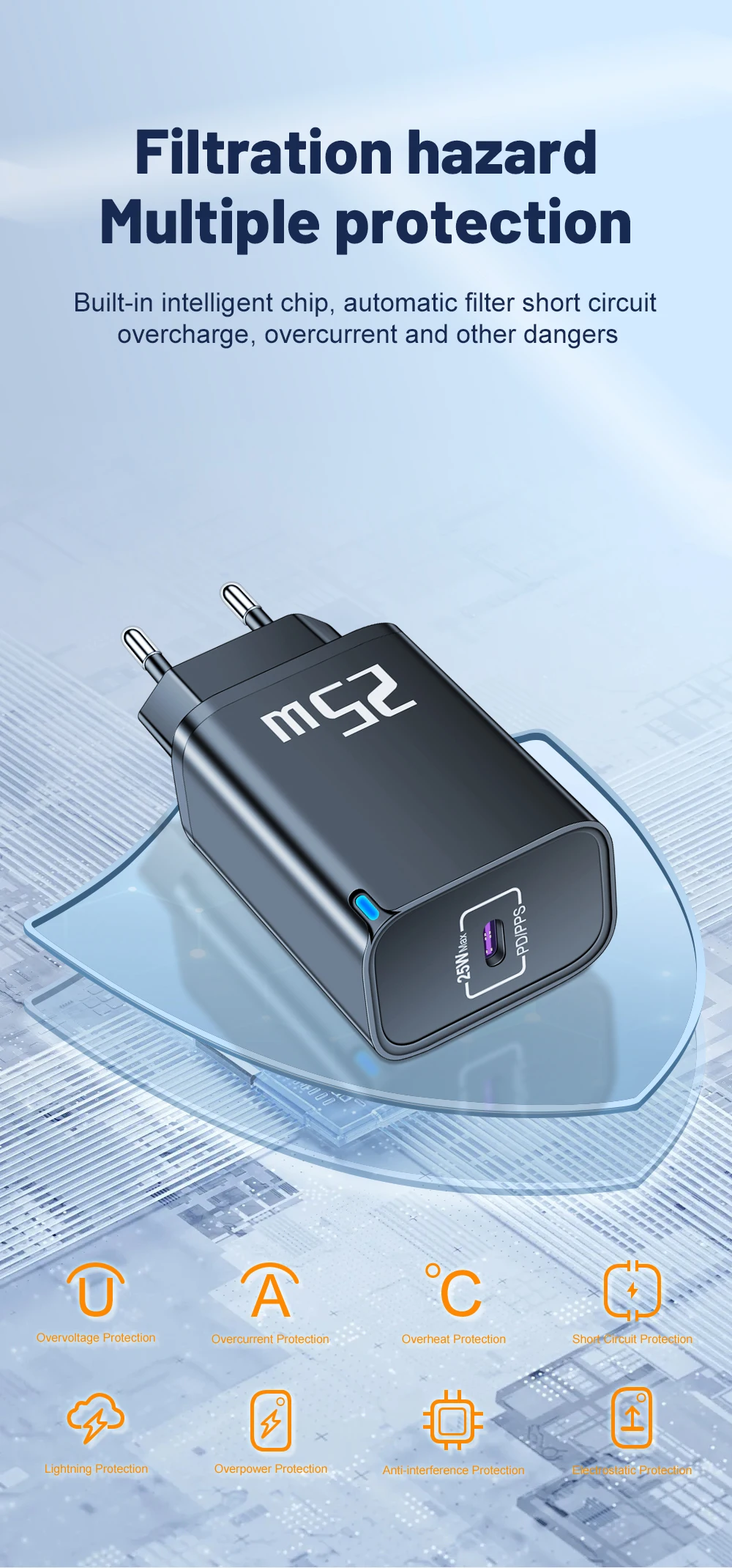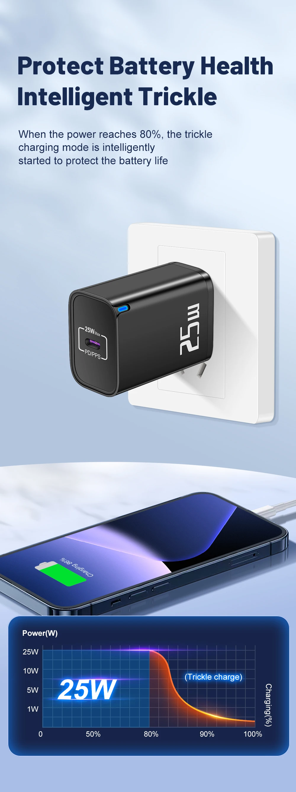 •1. 25W high power output, effectively reduce charging time and fast charging mobile phone.