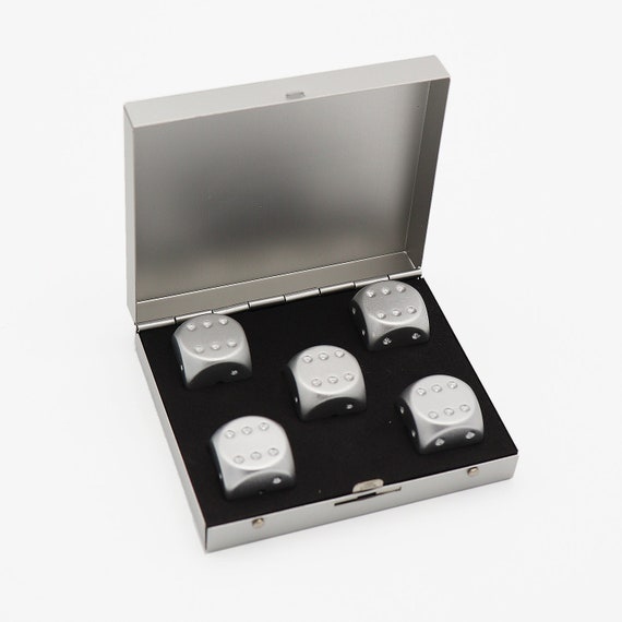 • 🎲 Five Brushed Stainless Steel Dice – High-quality, durable, and designed to last.
