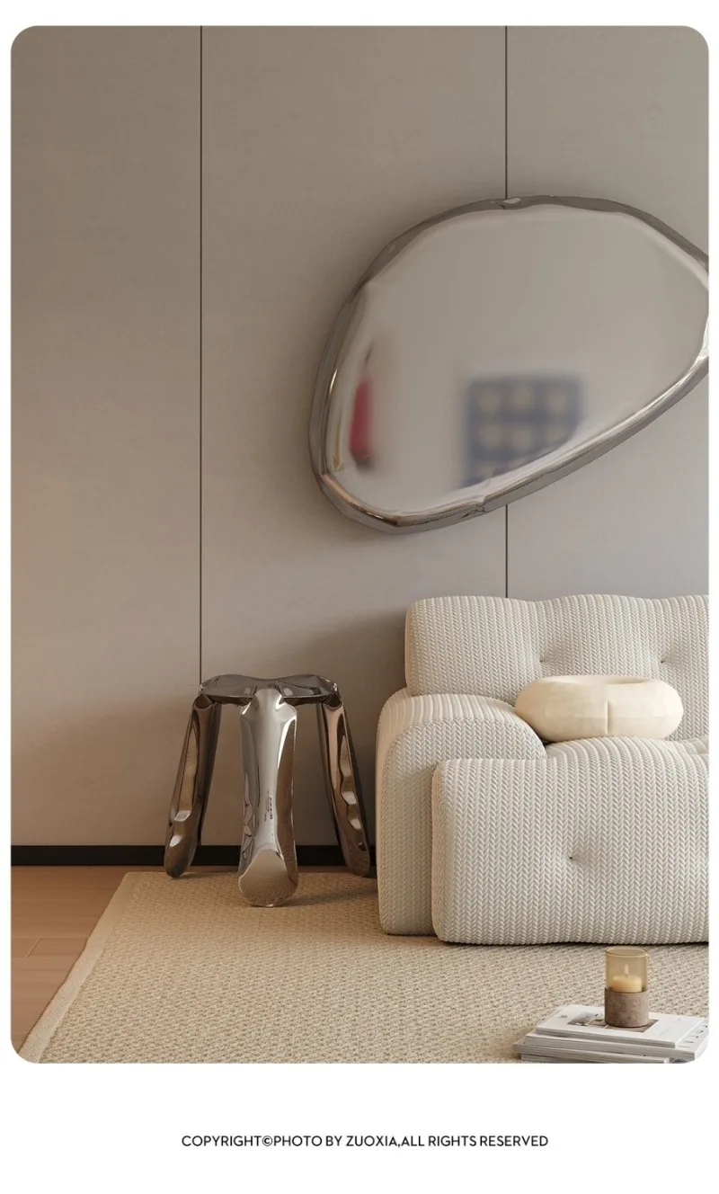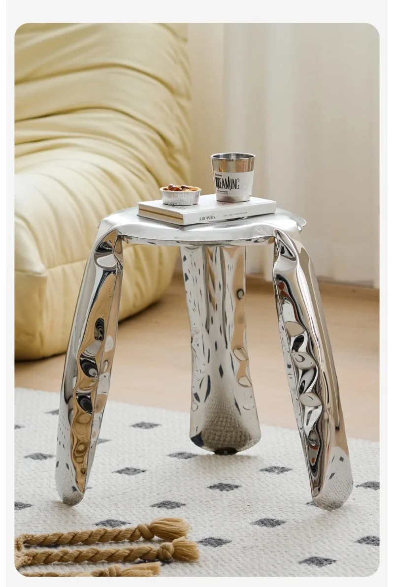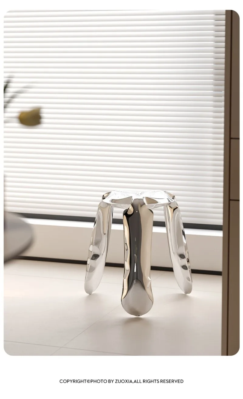Plopp-Creative Minimalist Metal Inflatable Stool, 3D Stainless Steel Stool, Nordic Creative Balloon Stool, Living Room Footstool