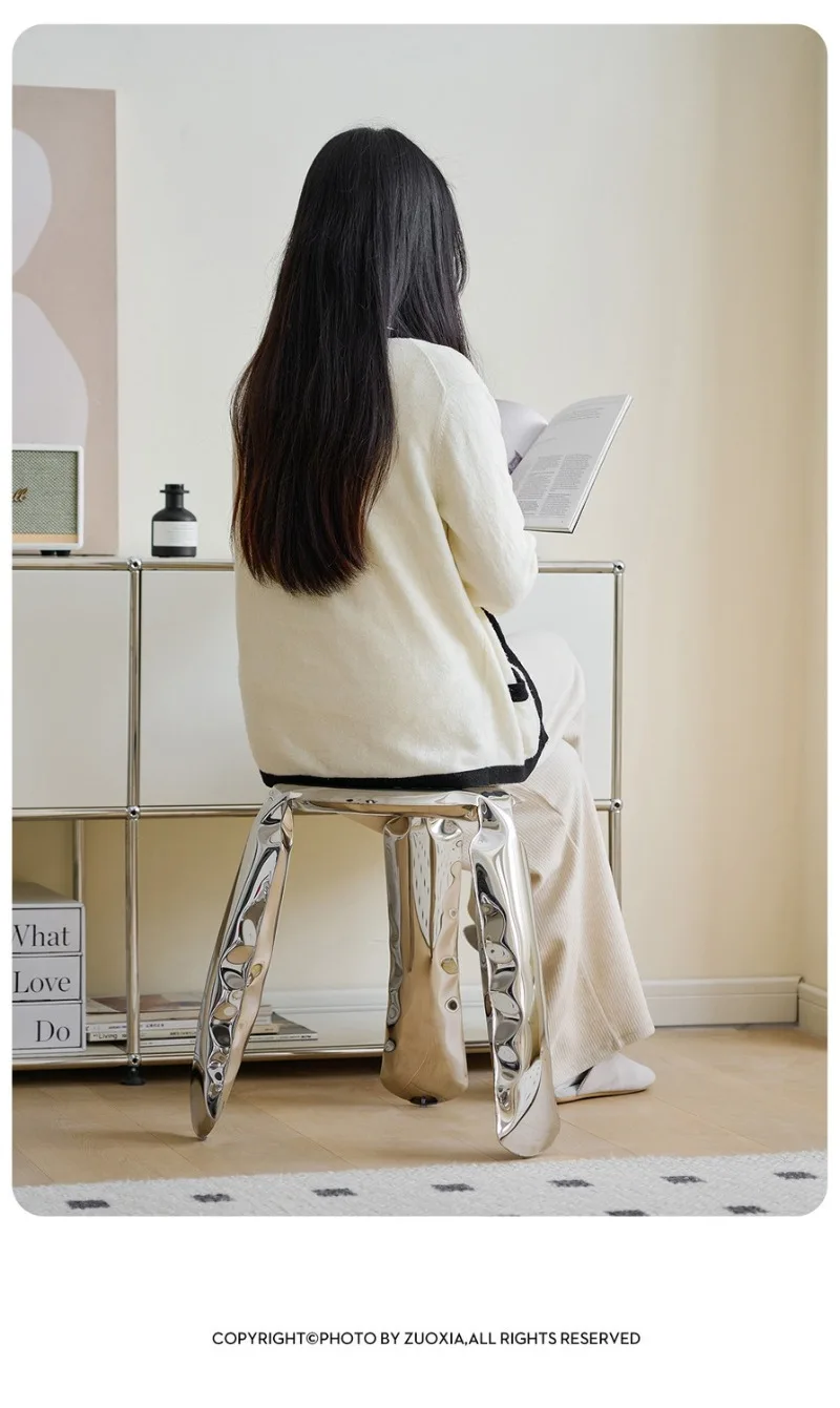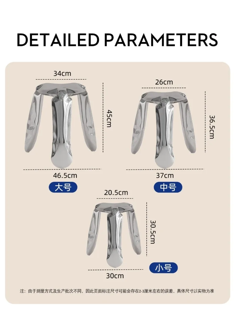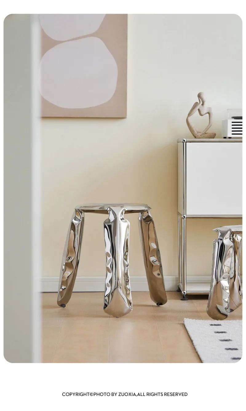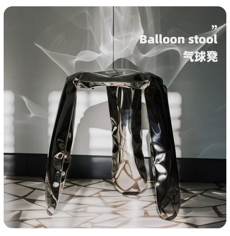 Plopp-Creative Minimalist Metal Inflatable Stool, 3D Stainless Steel Stool, Nordic Creative Balloon Stool, Living Room Footstool