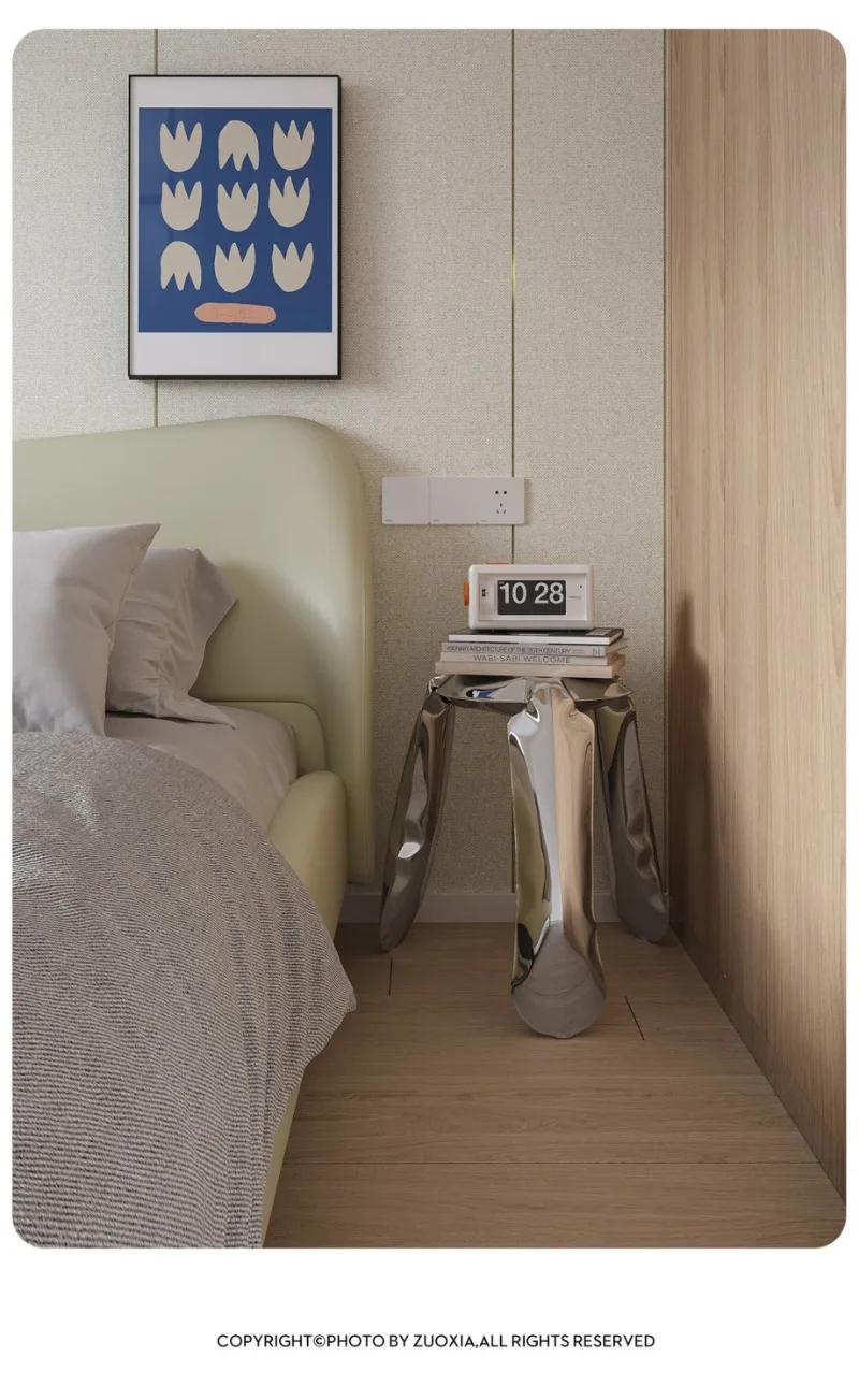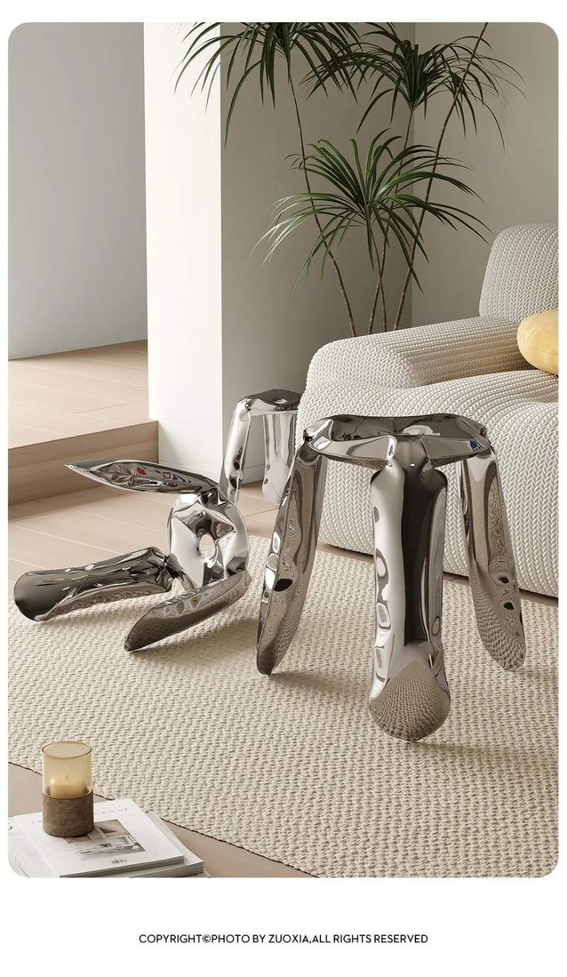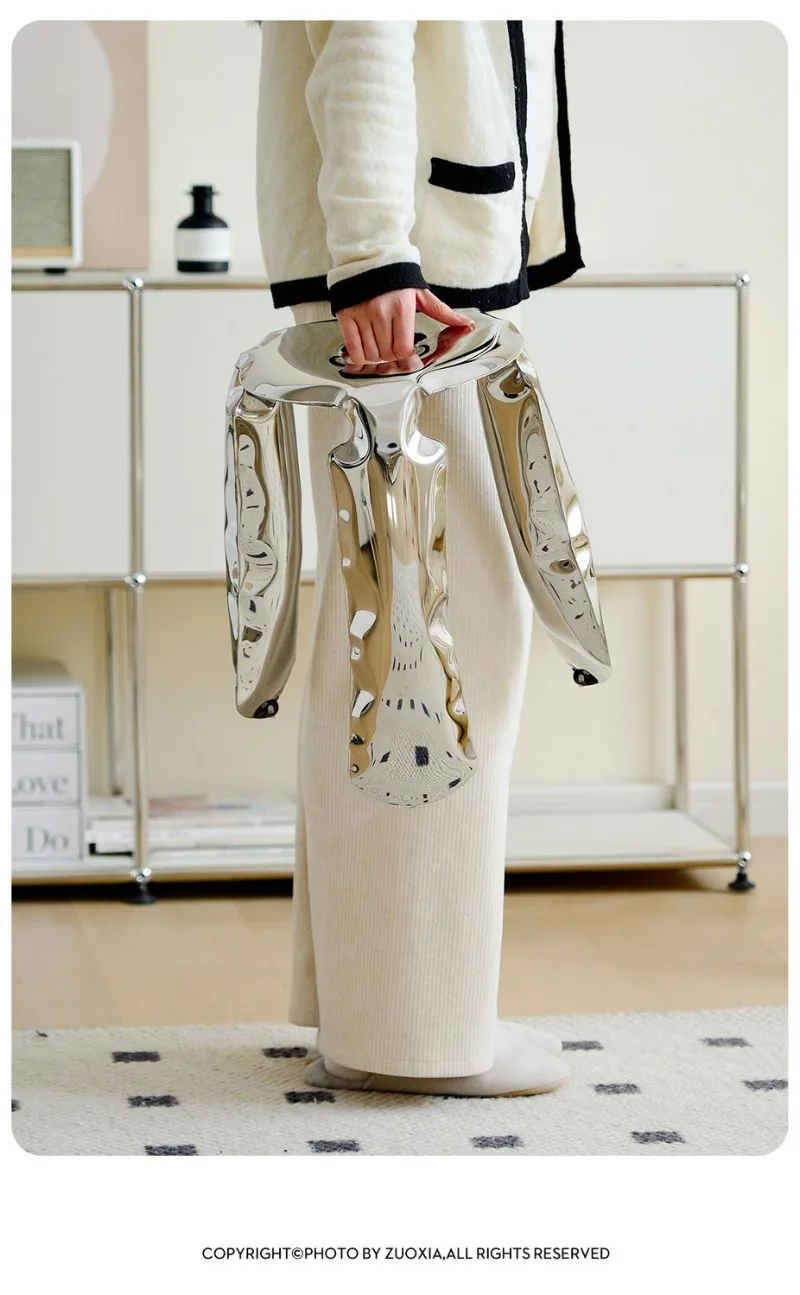 Plopp-Creative Minimalist Metal Inflatable Stool, 3D Stainless Steel Stool, Nordic Creative Balloon Stool, Living Room Footstool