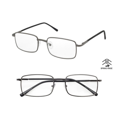 Reading Glasses Mens Womens Metal Spring Hinge 2 PACK Square Frame Readers