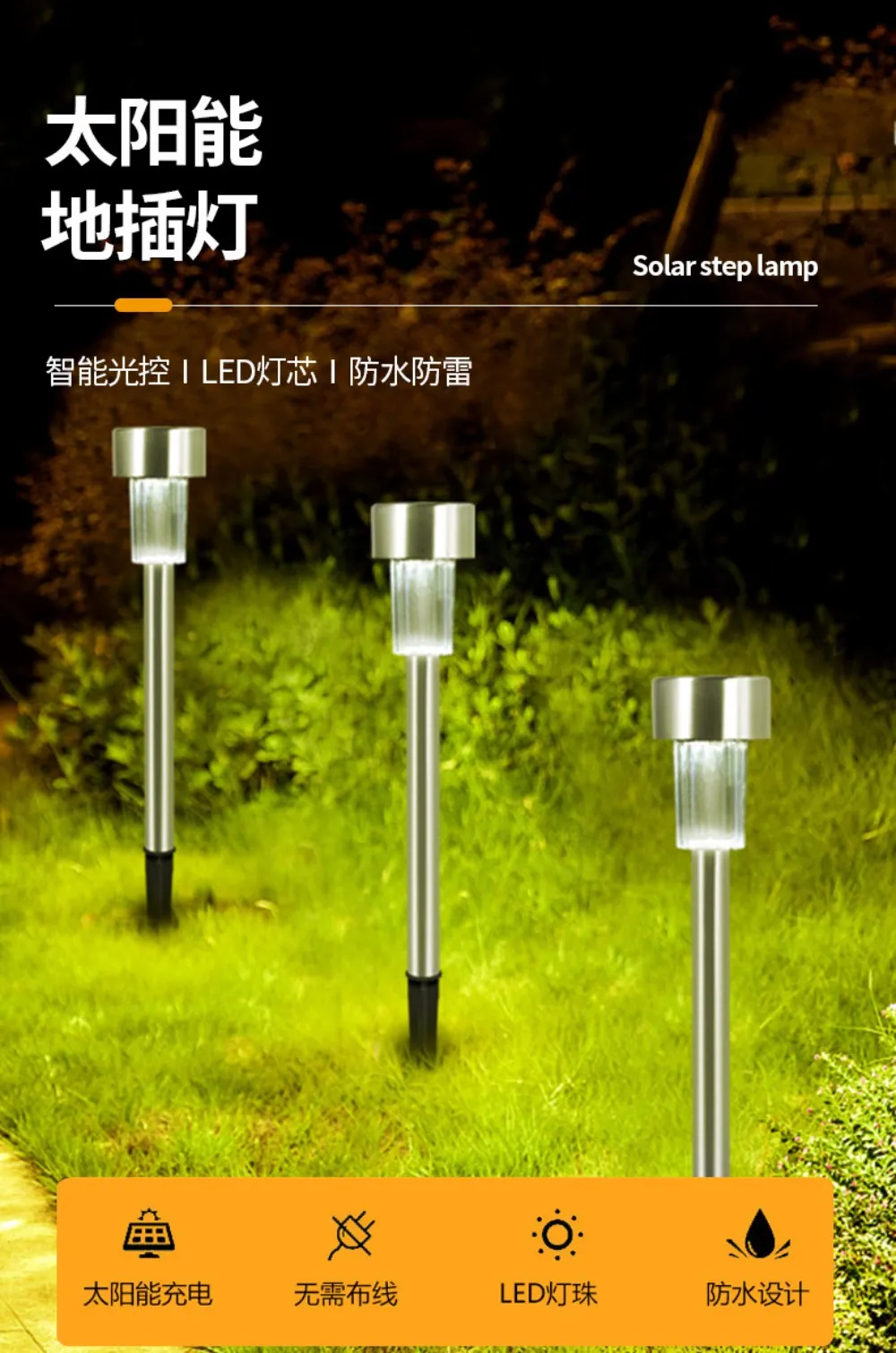 【Convenient installation】No need for complex wiring, insert it into the soil to fully absorb sunlight, and enjoy its lighting at night.