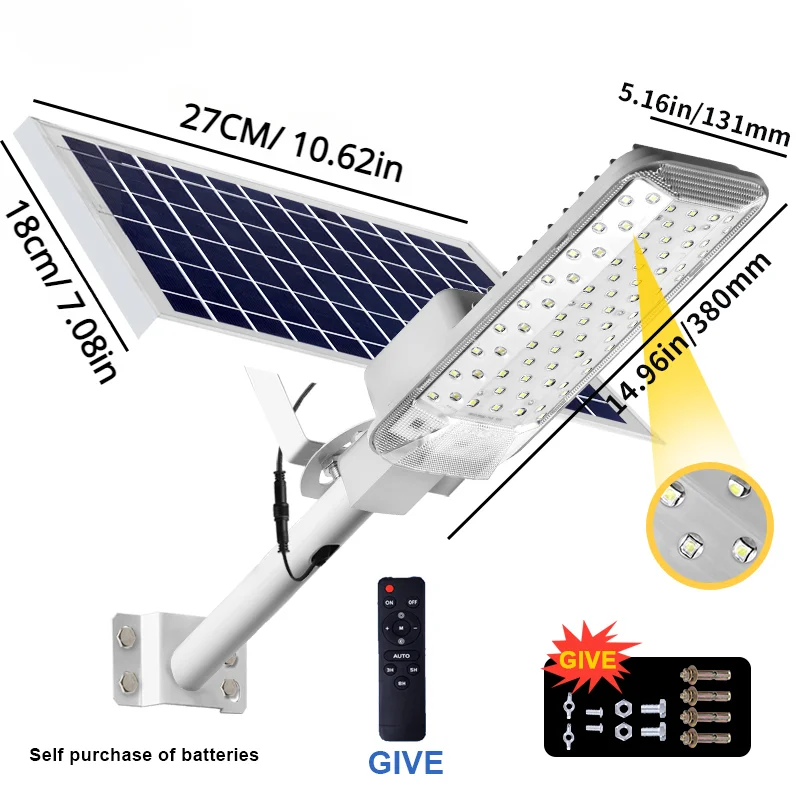 Our solar street lights are controlled by a remote control, with adjustable brightness and time. It is dimmable. Lighting time mode: (1) Automatic switching, from dusk to dawn, all night lighting; (2) The countdown to lighting time is 7-9 hours. You can make adjustments according to the situation and weather.