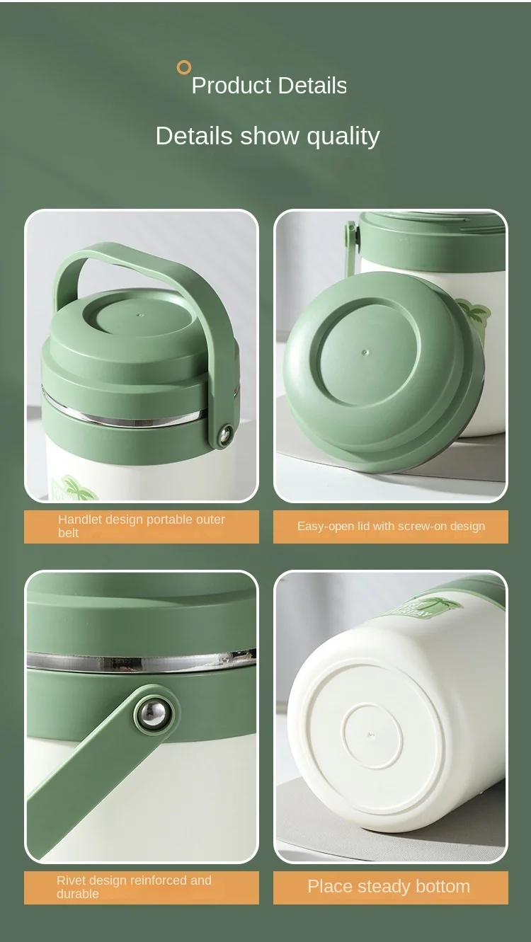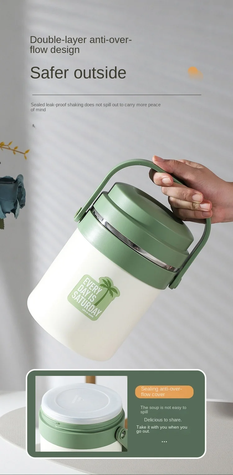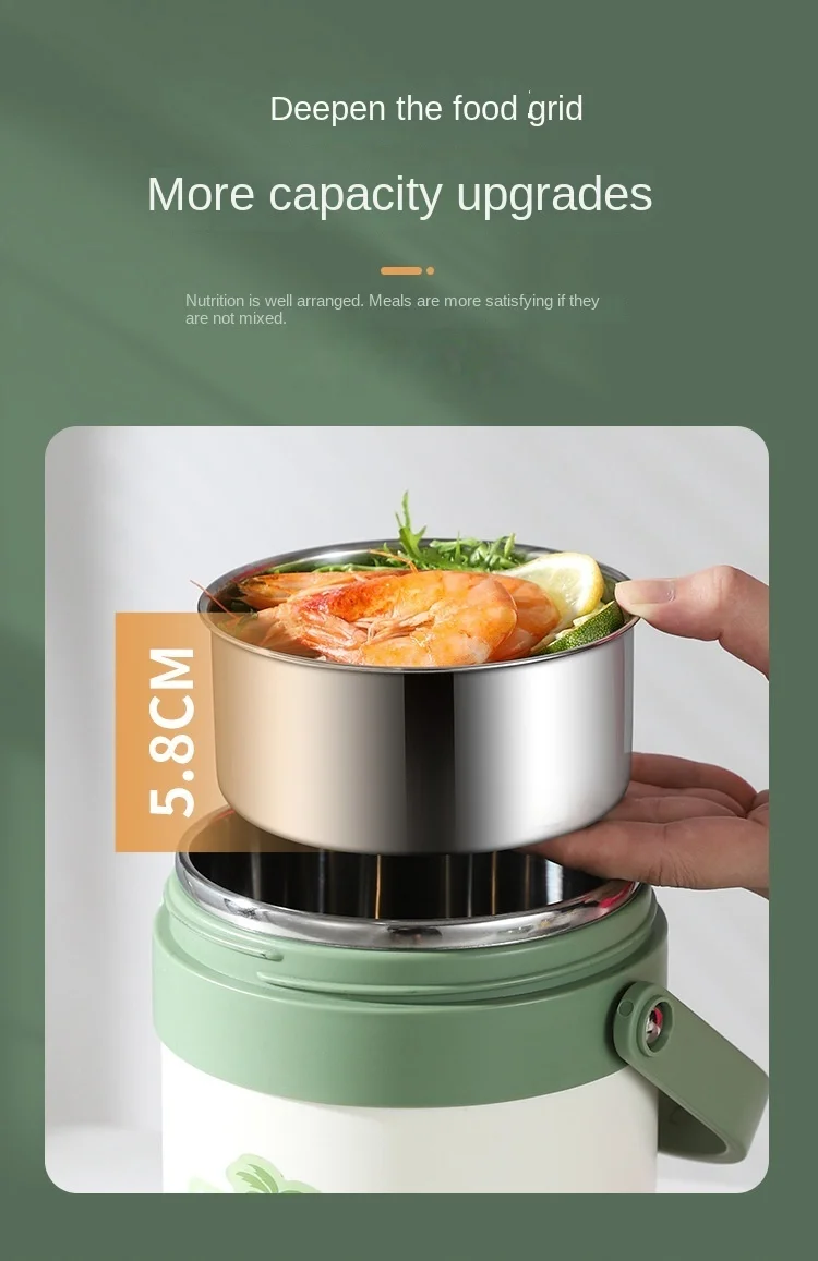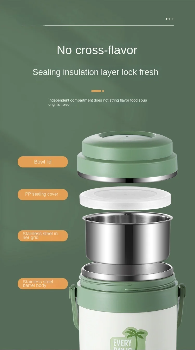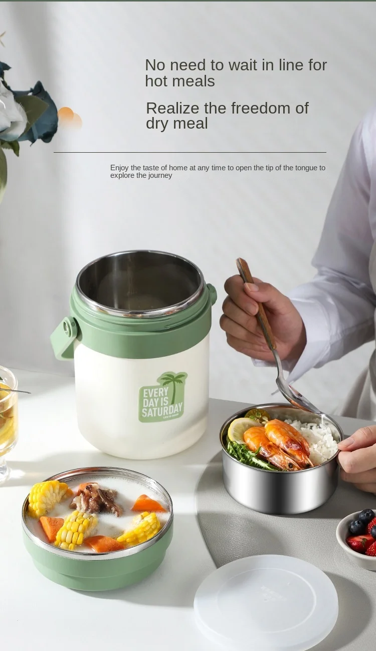 Stainless Steel Adult Vacuum Insulated Soup Bucket Thermos Bottle Portable Multi-layer Stackable Bento Box Hot Food Container