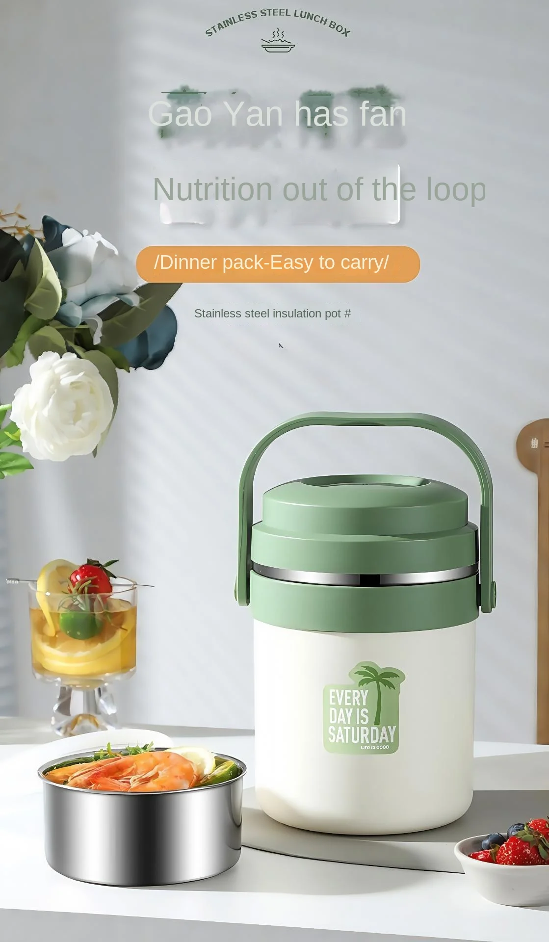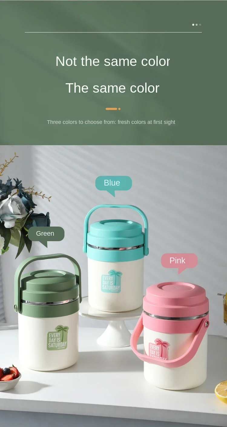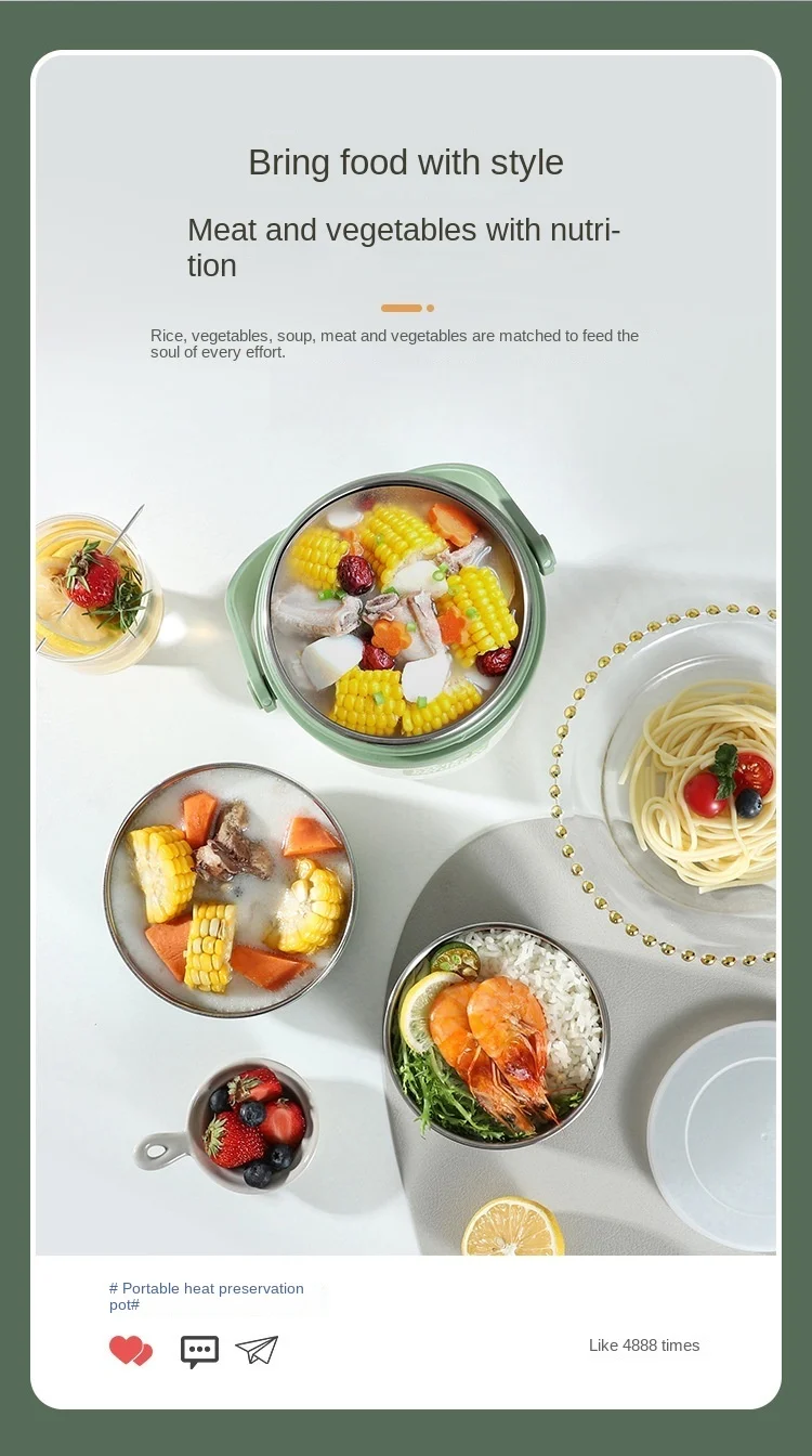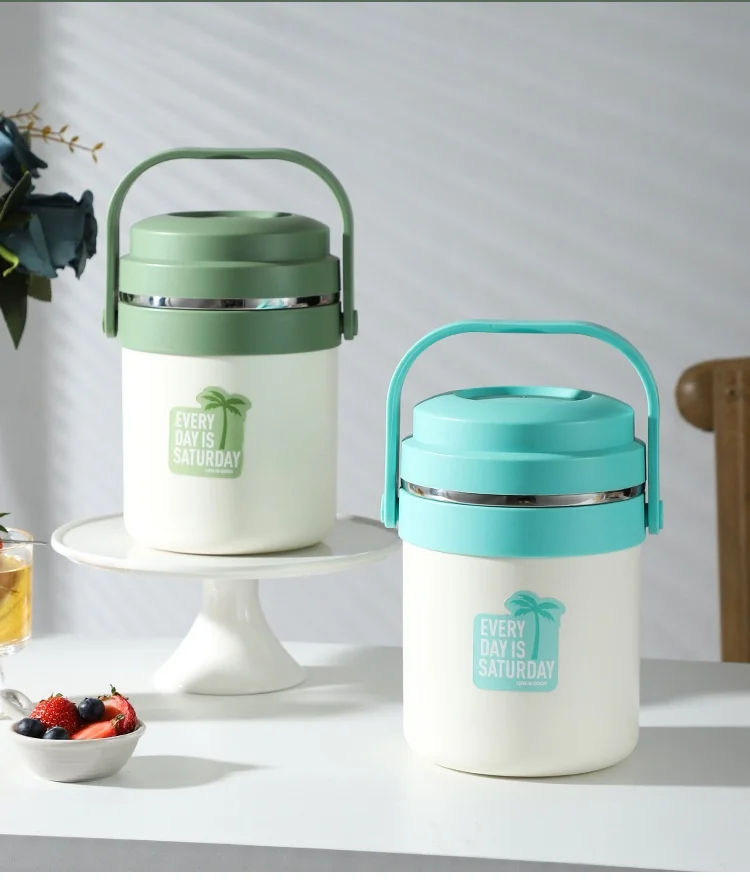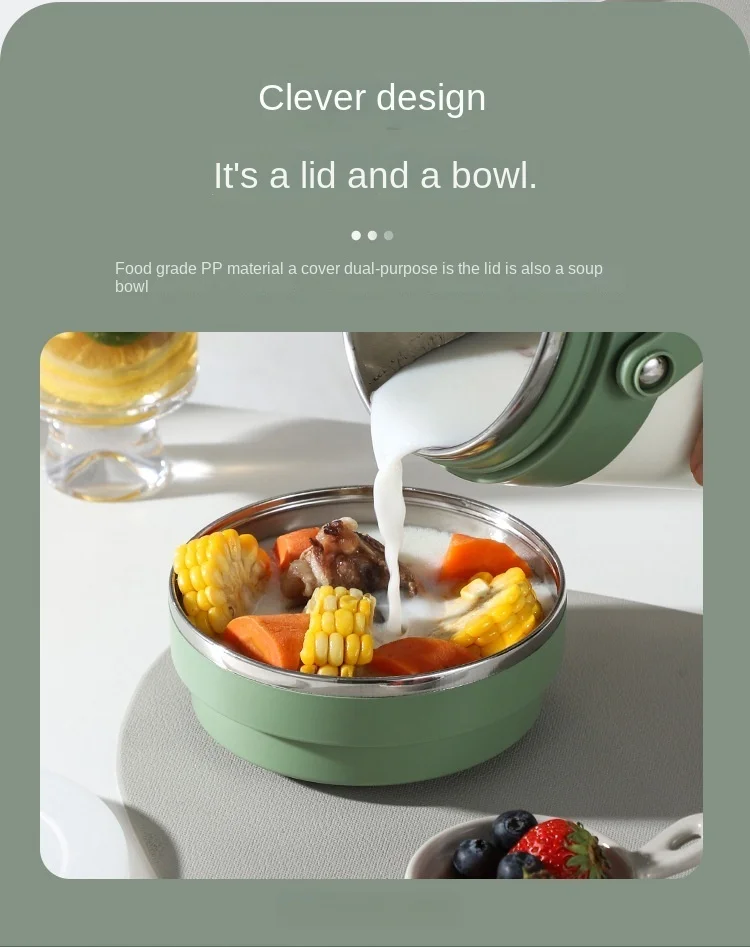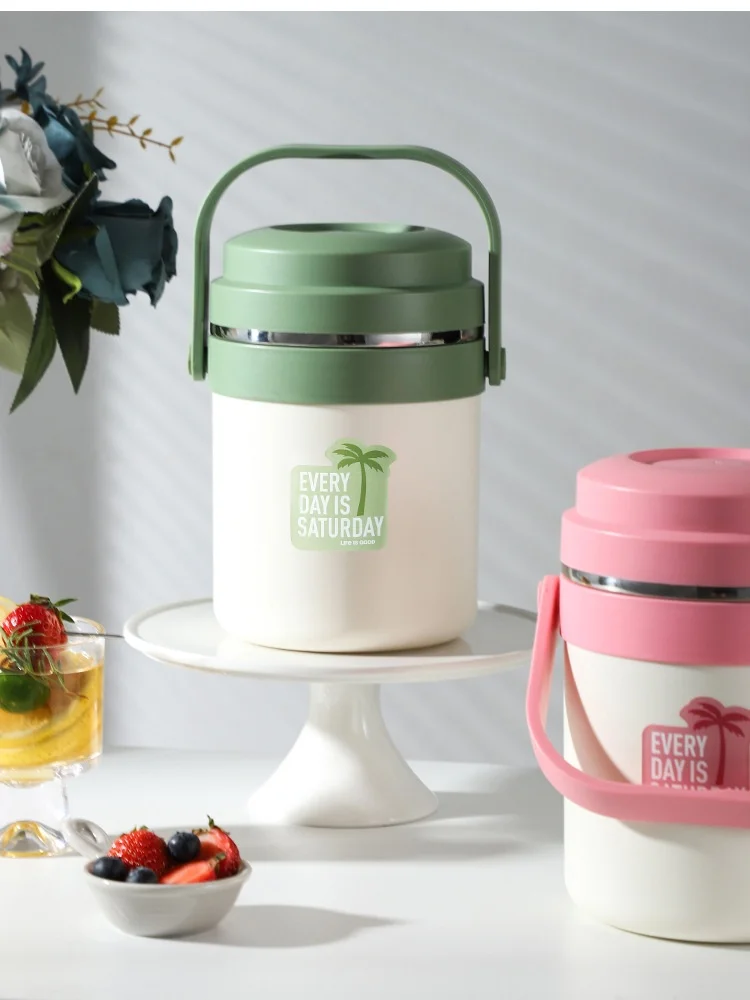 Stainless Steel Adult Vacuum Insulated Soup Bucket Thermos Bottle Portable Multi-layer Stackable Bento Box Hot Food Container