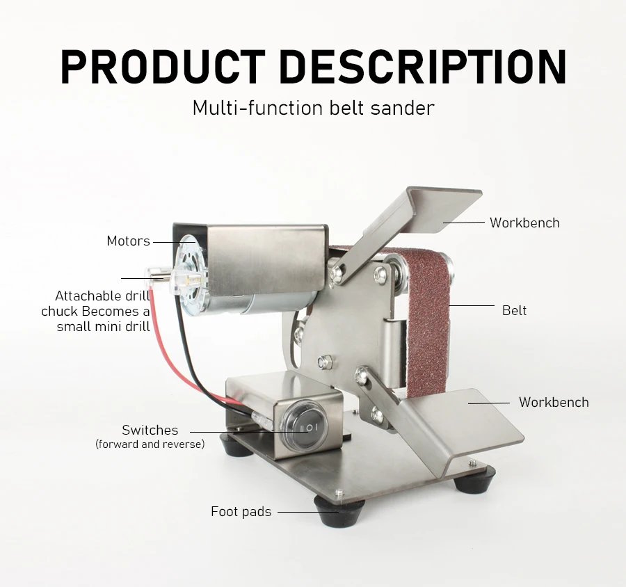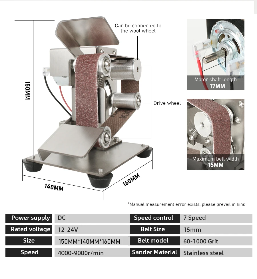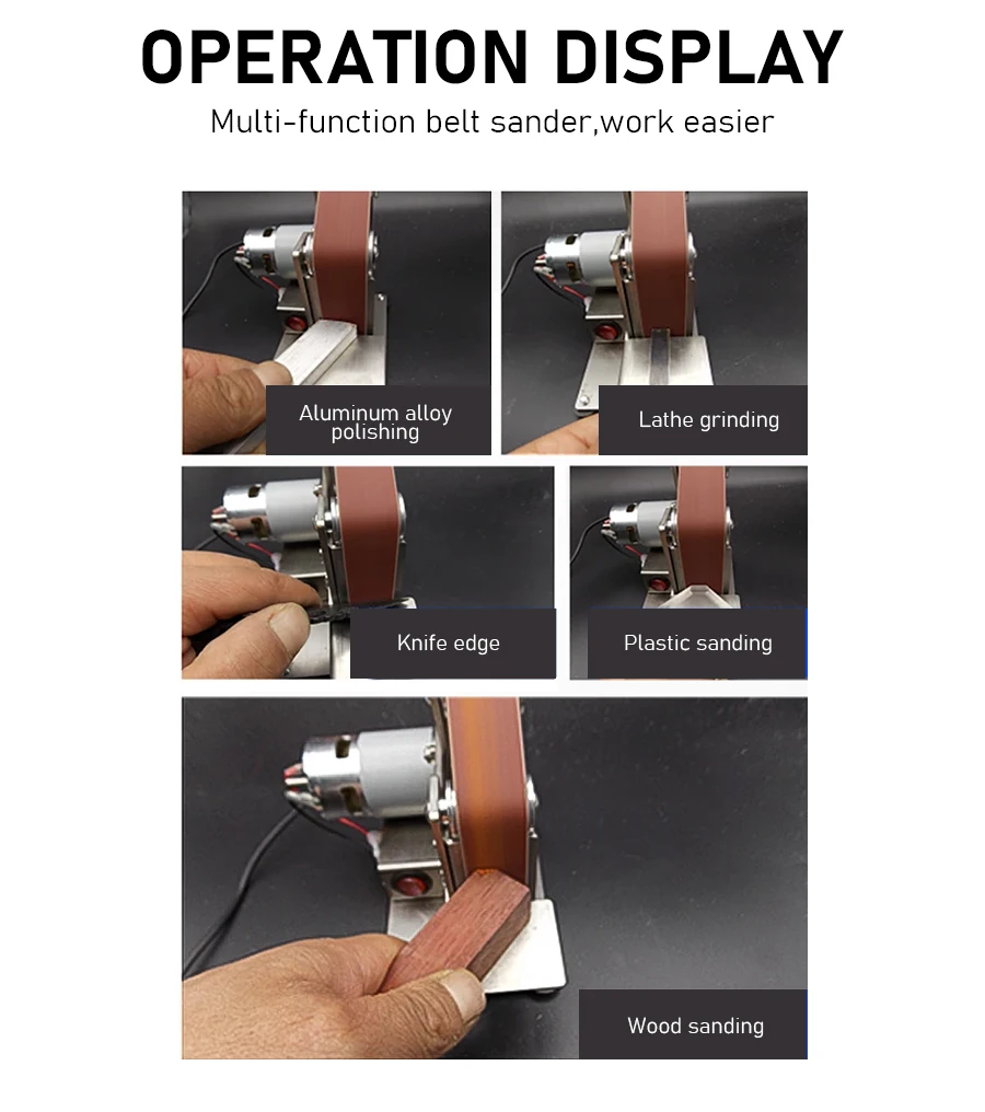15mm Belt Sander+10pcs sanding belt + 3pcs Wrench +Power Supply