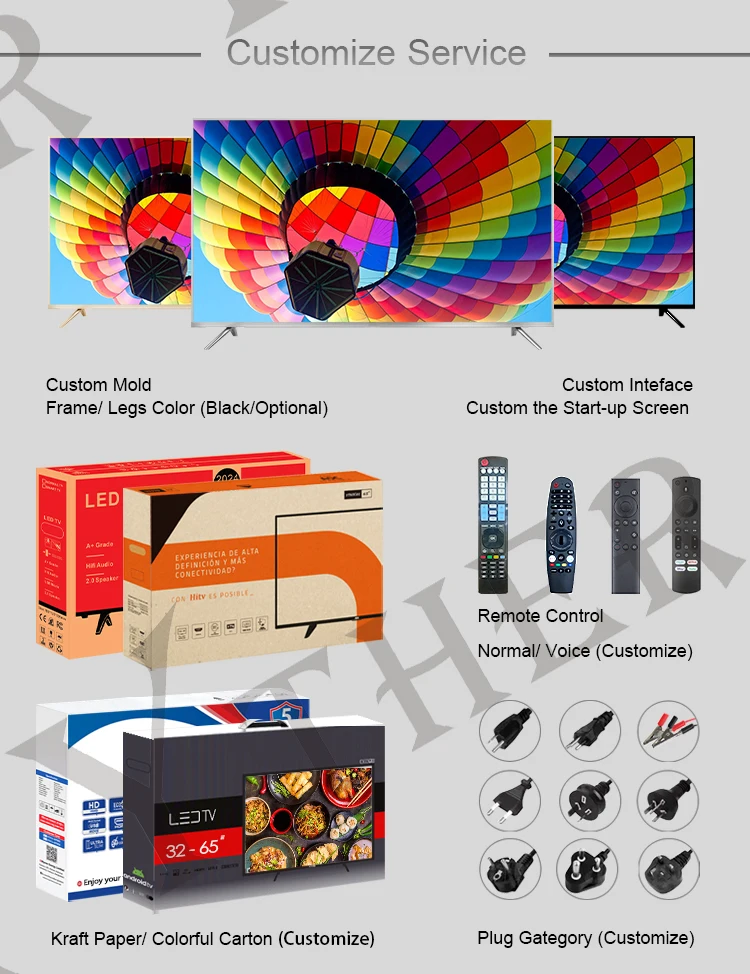 A Professional OEM/ODM LCD Tv, LED Tv, Smart Tv, 4K Tv, LED Monitor And SKD&CKD Kits, LED Tv Parts, DLED Tv, OLED Tv, Panel, Slim FHD 1080P LED Tv. We Have Our Own Tv Factory In Guangzhou, China. Which Has Over 200 Workers, 5 Production Lines Which Could Offer 250 Thousand Sets Of Tv Each Month, Our Tvs Cover 17 19 24 32 40 43 50 55 65 75 85 100 Inch With All Ready Function And Good Practicability, Elegant And Unique Appearance So They Are Popular Sell At Home And All Over The World, And They Are Very Popular Among End Users. Most Led Tv 24 Inch, 32 Inch And 43 Inch Are Very Hot Selling And More Inquiries From Different Country.