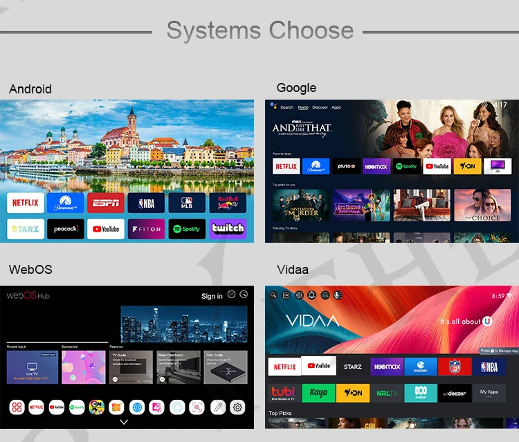 Android/ WebOs/ Google/ Vidaa/ Hotel Customized