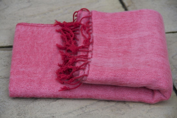 Beautiful color, even more gorgeous in person! The size is very generous, and the texture is cozy and soft, while also light and very comfortable to wrap around!