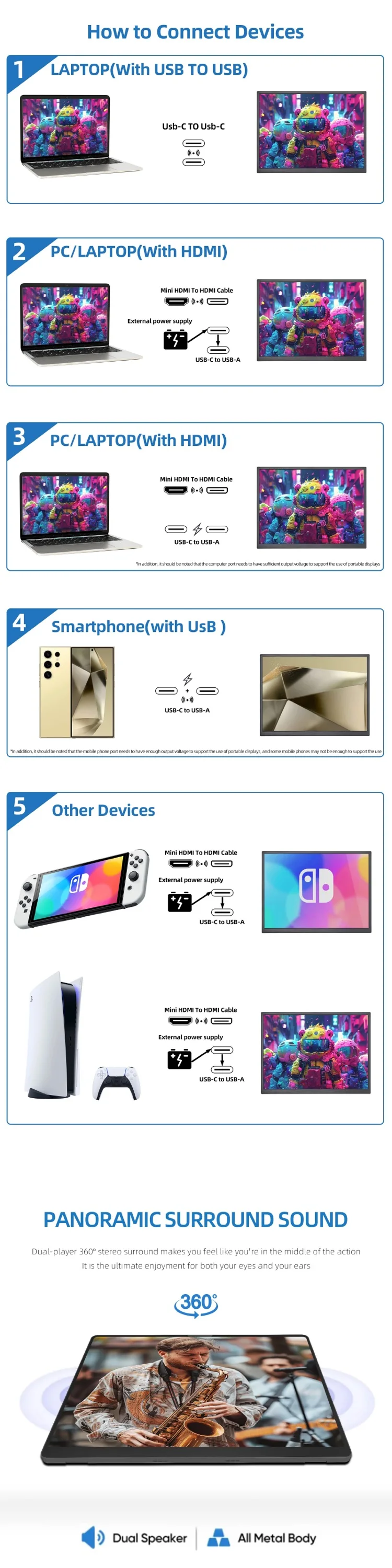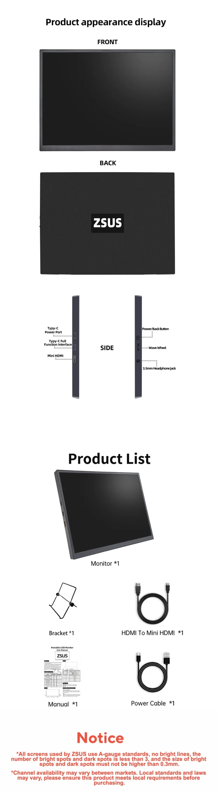 ZSUS 10.5-Inch Portable Monitor 1280P 100%sRGB 15:10 Low Blue Light For XBox PS4 / 5 Switch Cell Phone PC Loptop Extension